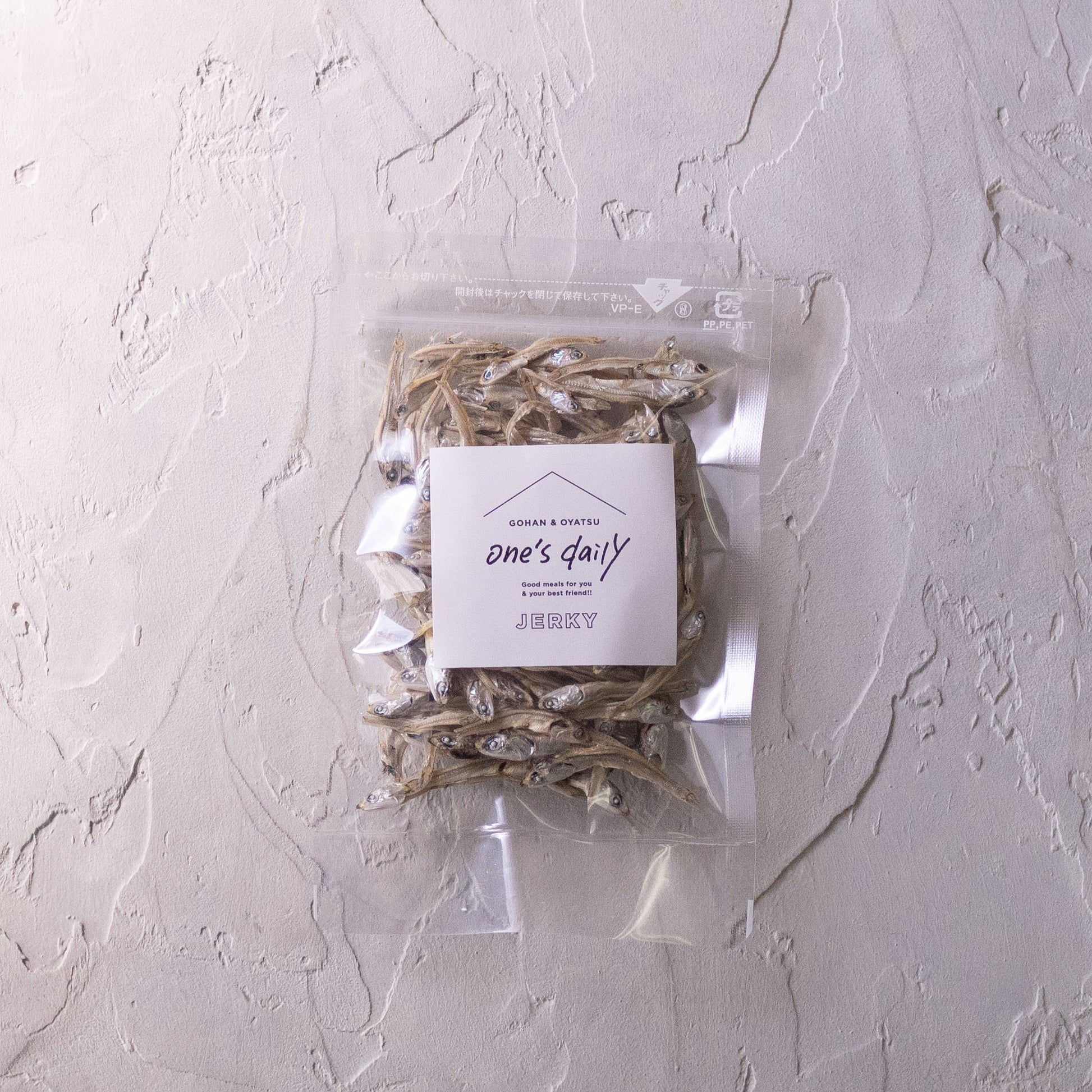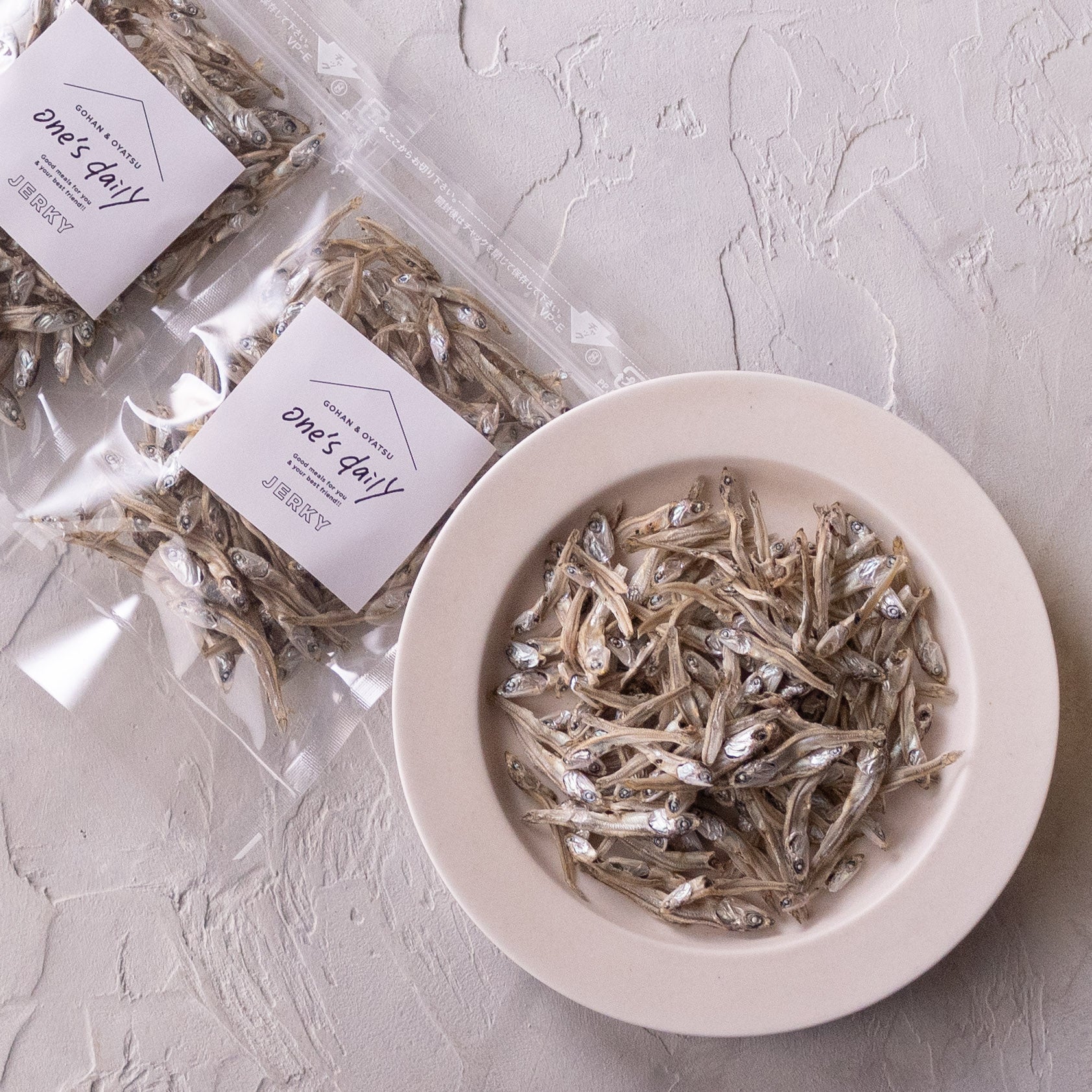 とびっきりおいしい新鮮なカタクチイワシ(瀬戸内海産)を丁寧に真水で炊いて、低温でじっくり乾燥した塩不使用の絶品イワシジャーキー。