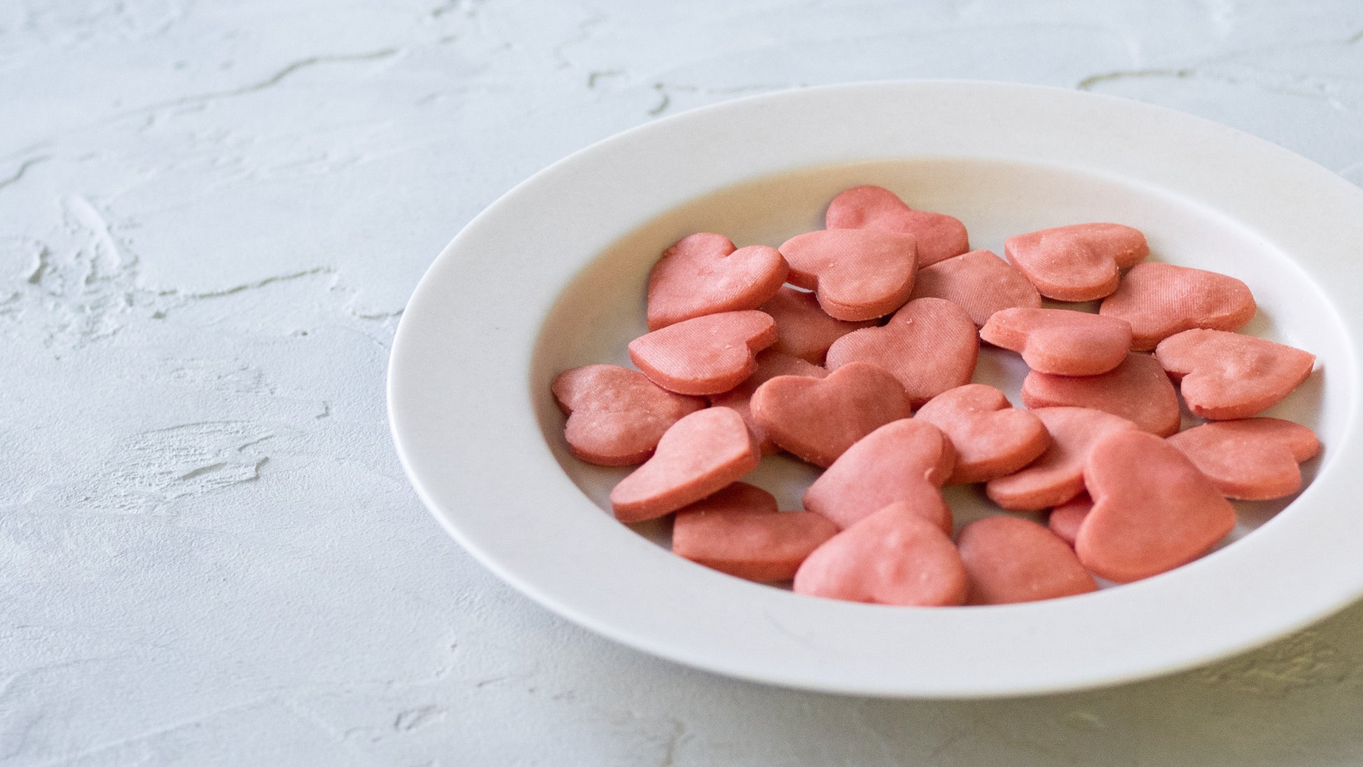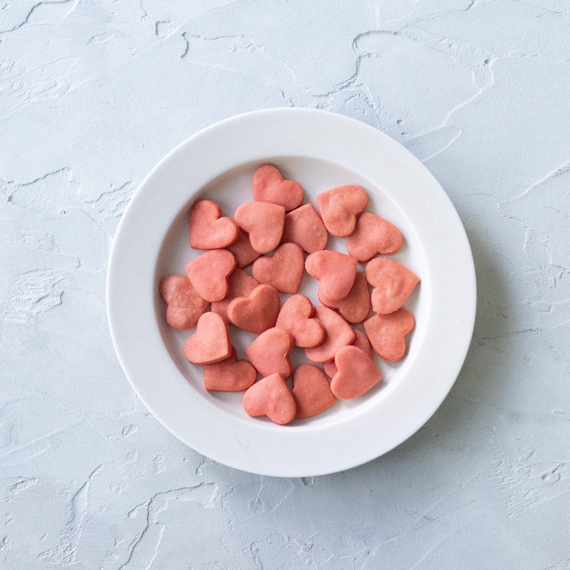 ハートのピンクはビーツの色。ビタミンやカリウムなどのミネラル、食物繊維など数多くの栄養素が含まれる野菜です。